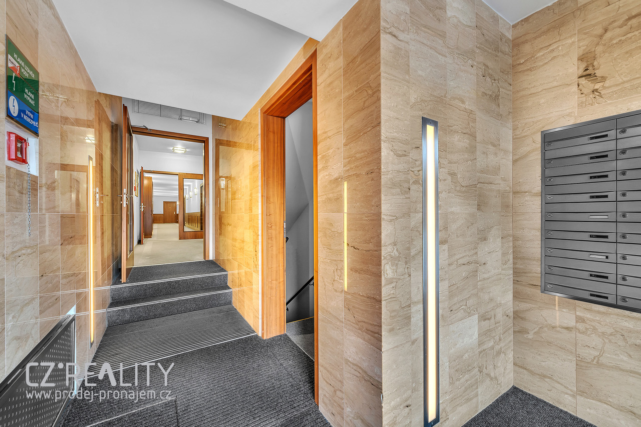 Bytový dům, společné části domu i byt jsou ve vysokém standardu. Na chodbách v domě i na schodišti jsou položené koberce.