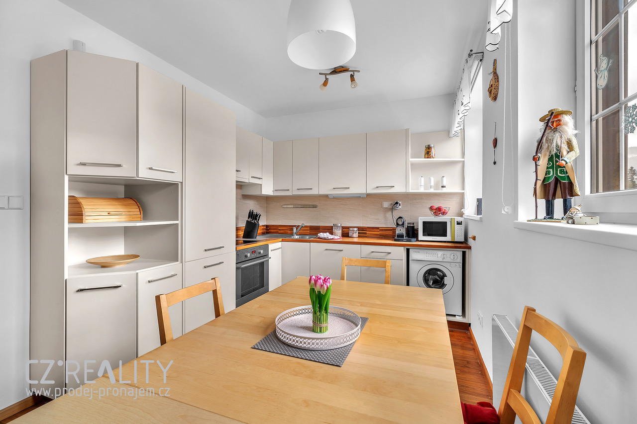 K bytu náleží prostorná sklepní kóje umístěná v 1.PP, kde jsou chodby vybavené lavičkami na možnost přezutí z lyžařské obuvi. Dále k bytové jednotce náleží venkovní parkovací stání, které je umístěno přímo před domem a parkoviště je zajištěno závorou. Za domem se nachází prostorná zahrada s posezením.