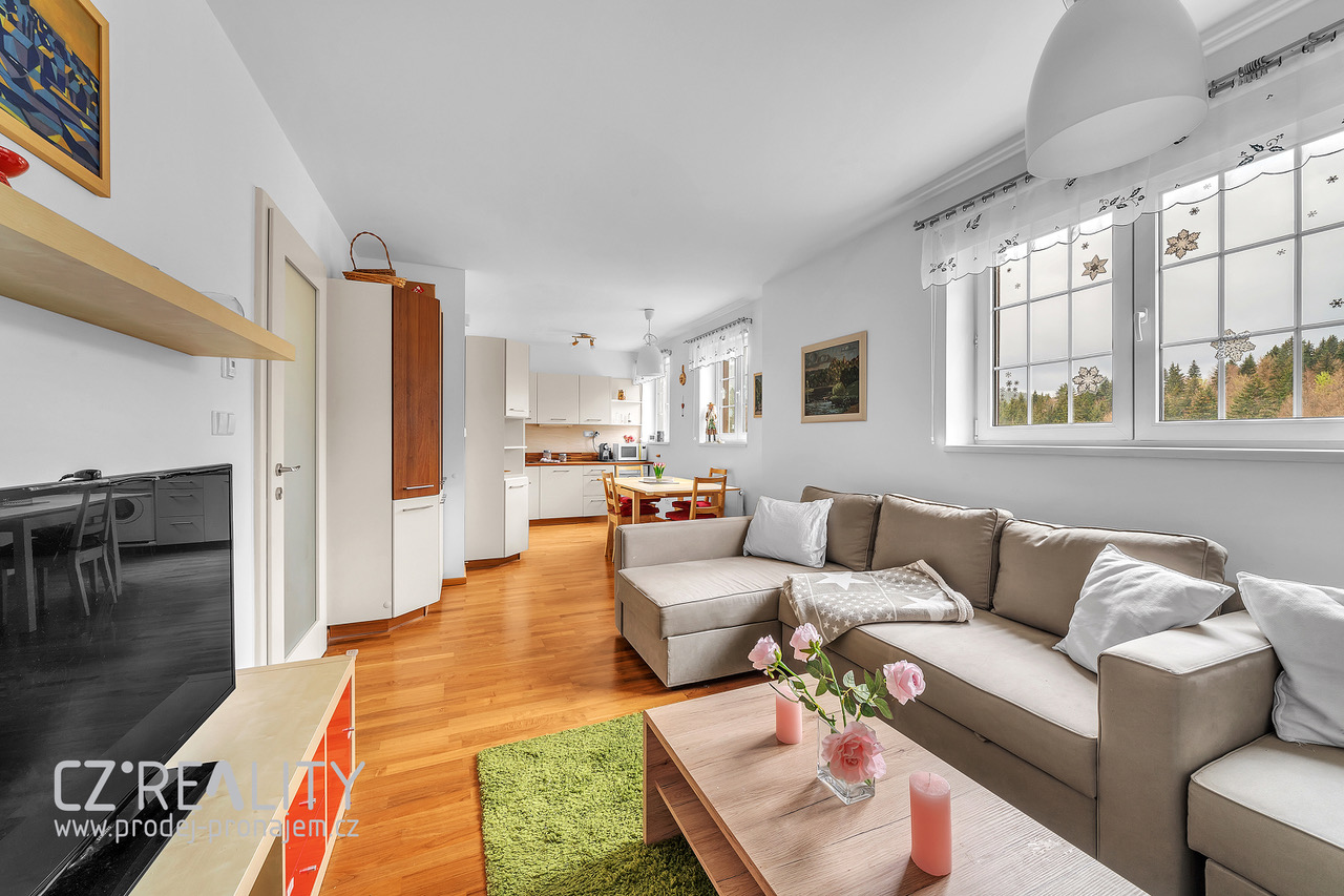 Bytová jednotka se nachází v širším centru Špindlerova Mlýna, 5 minut pěší chůze se od domu je lanové dráha Medvědín a do centra města je to také 5 min. pěší chůzí.